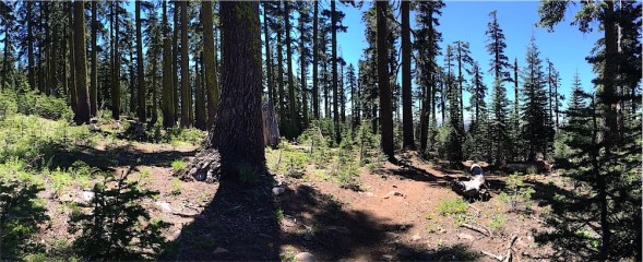 Forested section Published June 24, 2015 at 1001 × 408 in Ellis Peak from Barker Pass ← Previous Next → Trail is park-like for a short while